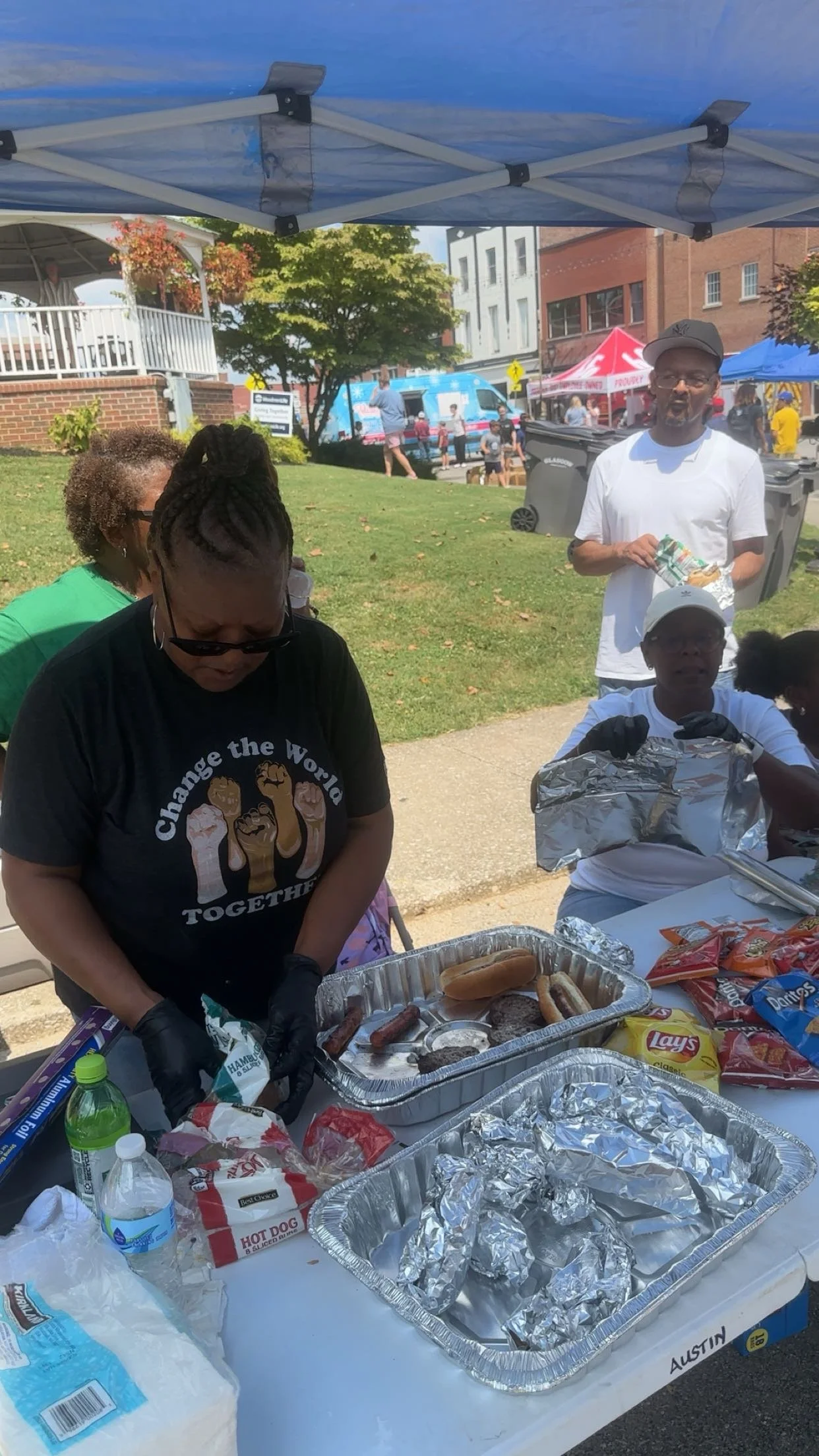 OTR Volunteers gave away 200 hamburgers and hotdogs.